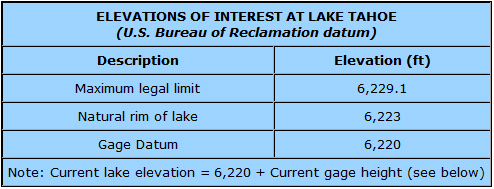 Note: The "Gage Height" shown in the graph is how far the lake level is above the gage's reference point elevation of 6,220 feet (Gage Datum).